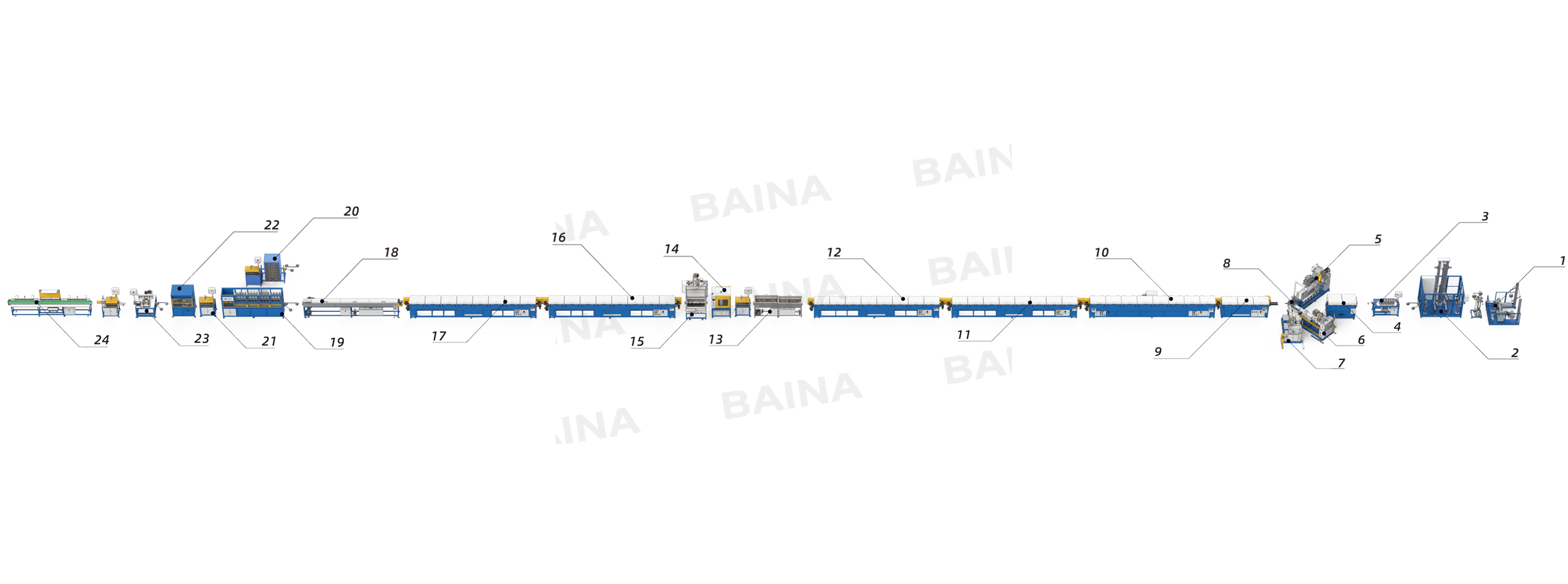 | 2-Аккумулятор (65м) | 6-090mm20D Вакуумный экструдер для холодной подачи резины | 10-8 м Микроволновая вулканизационная печь | 14-Лечение плазмой | 18-6 м Бак водяного охлаждения | 22-Сверлильный станок |
